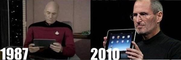 Les écrans tactiles font aujourd’hui partie intégrante de notre quotidien. Du smartphone aux montres connectées, en passant par des bornes de retrait ou encore des arrêts de bus, se passer de cette technologie semble aujourd’hui impossible. Cette invention a été pensée par différents films et séries, notamment Star Trek. Dès 1966 la série a montré sa conception du téléphone portable, et de sa tablette en 1987, soit plus de 10 ans avant les premiers prototypes. On peut donc légitimement se poser la question : sans le design singulier de ces films, aurions-nous des téléphones et tablettes de cette taille et de cette forme ? Et s’ils avaient eu des tablettes, nos parents auraient-il ressemblé à l’officier Picard ?
